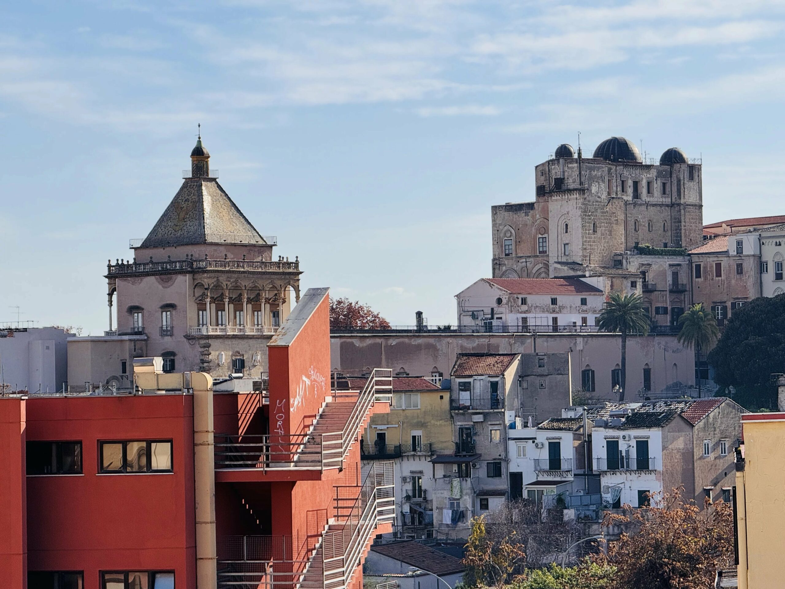 The immediate surroundings are lively yet residential, with a mix of traditional palazzi and everyday neighbourhood amenities just steps away. You'll find numerous shops, cafés, bakeries, and local services just 400m to the south around Piazza Independenza. The city's Norman Palace, now seat of the Sicilian regional government, is just on the other side of the imposing Porta Nuova, one of the four old town gates. Beyond this are the picturesque gardens of the Villa Bonanno and the UNESCO-protected Arab-Norman cathedral, just a ten minute walk away.
