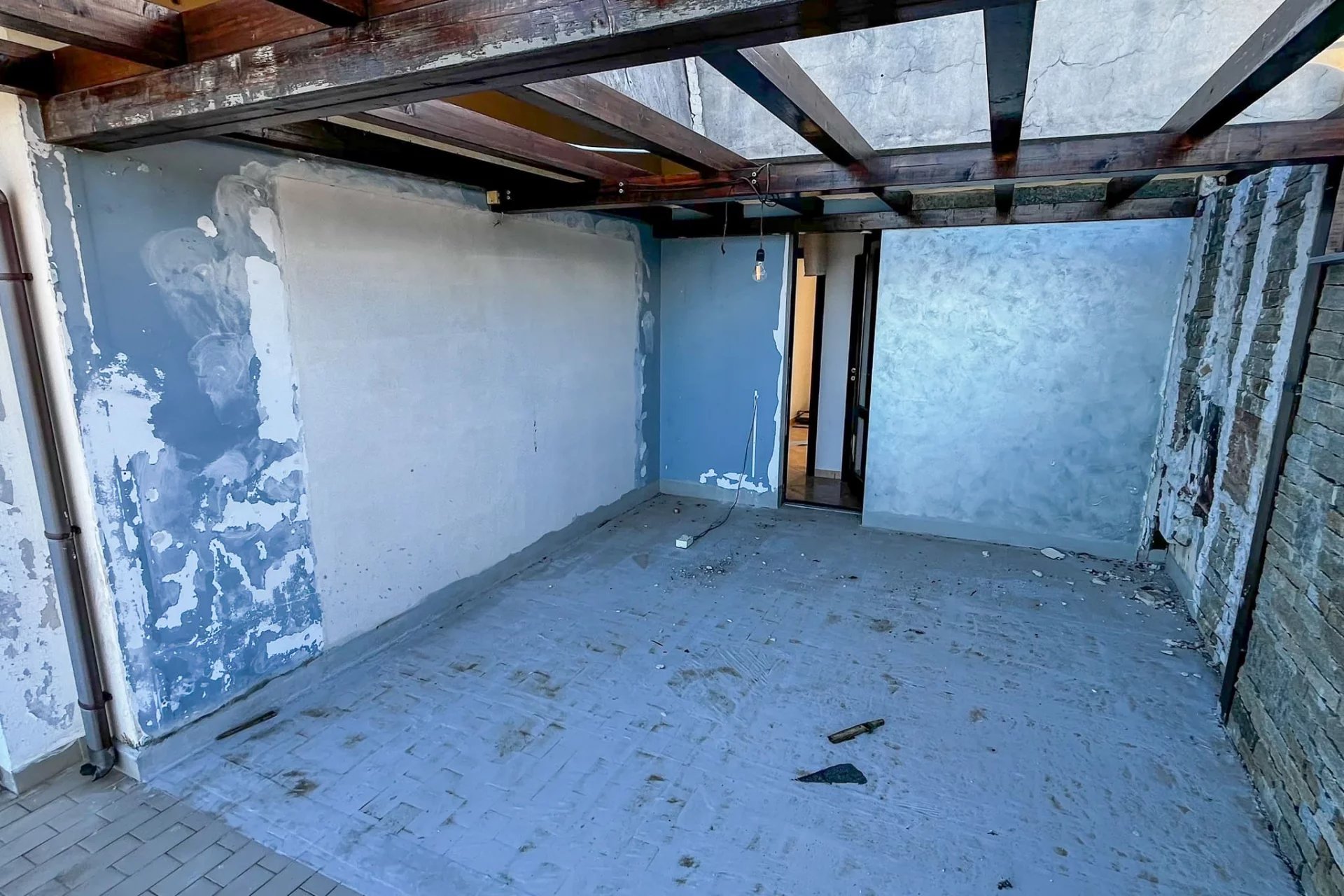 At the level of the roof terrace, you can see cracks and some flaking on the concrete pillar, which is actually the responsibility of the residents' association. The iron in the reinforced concrete has rusted. However, this looks worse than it is; a specialist we asked told us that it could be repaired for a few hundred Euro while you're smartening up the terrace.