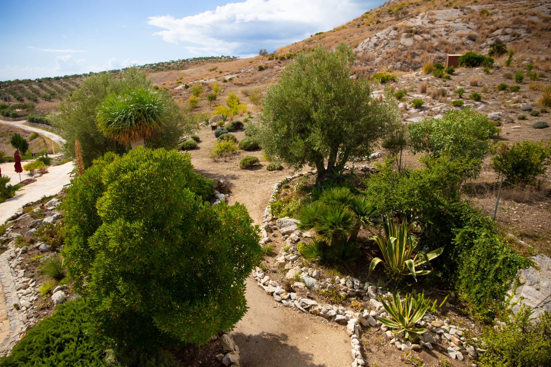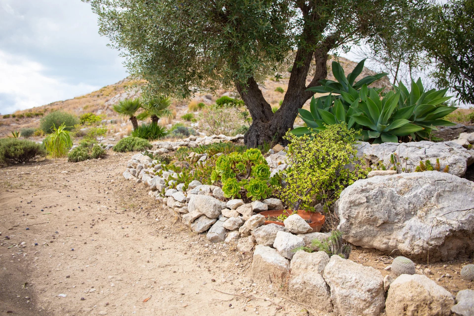 The gardens are richly planted with Mediterranean flora, including a number of examples of the prized Chamaerops Humilis (dwarf palm). Olive trees, pomegranates, pyracantha, viburnum and dragon trees offer shade and enormous character to the landscape. Closer to the ground you'll find succulents like agaves, aloes and ornamental cacti.