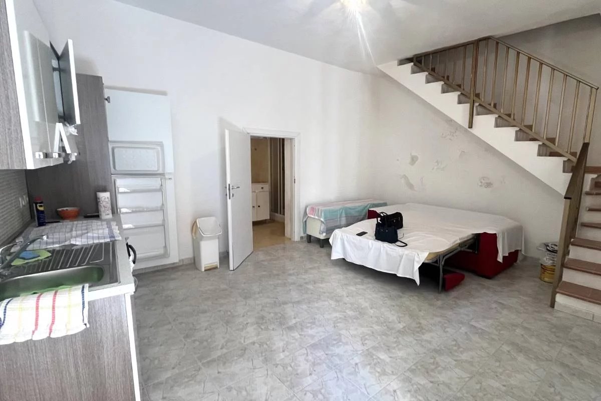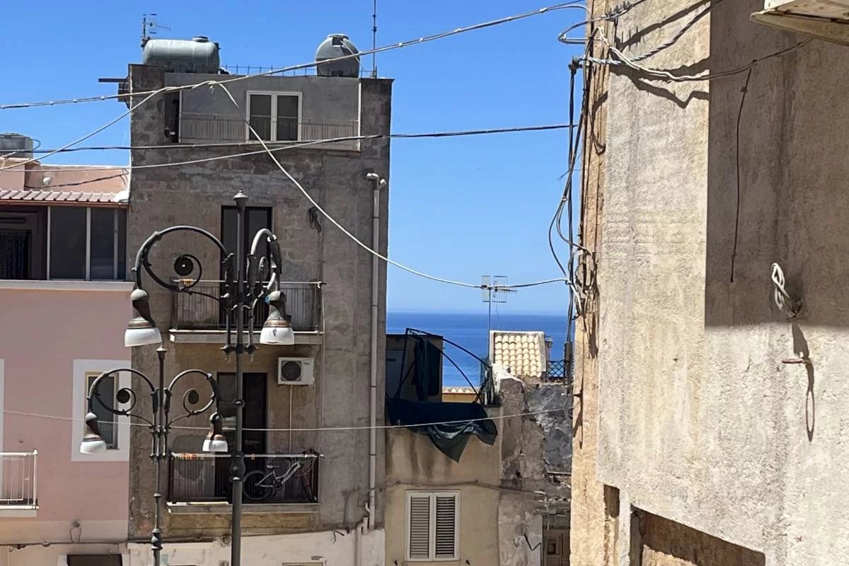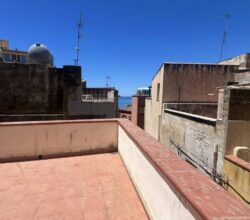 The house has the typical charm of a Sicilian old town property, it extends over three floors and as it is situated on a slope, both the first floor and the first floor have direct access from a small street. Theoretically, the first floor could also be lived in independently and separated from the rest of the house. There is a toilet on both the first floor and the second floor. From the second floor, a relatively comfortable internal staircase leads to the top floor, where we find a roof terrace of around 40 m², which also offers a partial sea view between the houses.