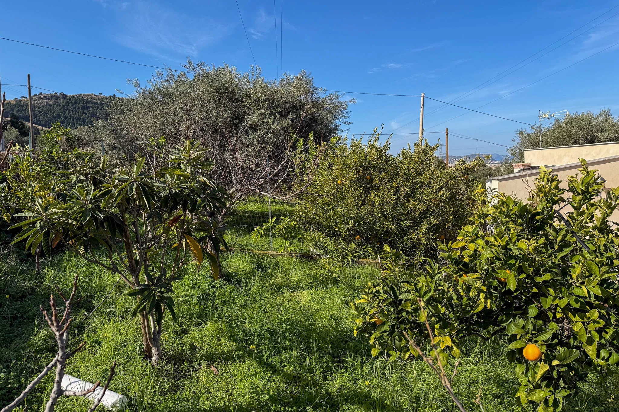 Contrada Sperone is a green, slightly elevated neighbourhood that feels thoroughly rural but not remote. A handful of small bars and convenience stores can be found within walking distance, but for anything more, the old town of Altavilla Milicia is about four kilometres away by a well-surfaced road. You'll find supermarkets, a pharmacy, a post office and of course the distinctively Sicilian mix of local shops selling fresh produce.