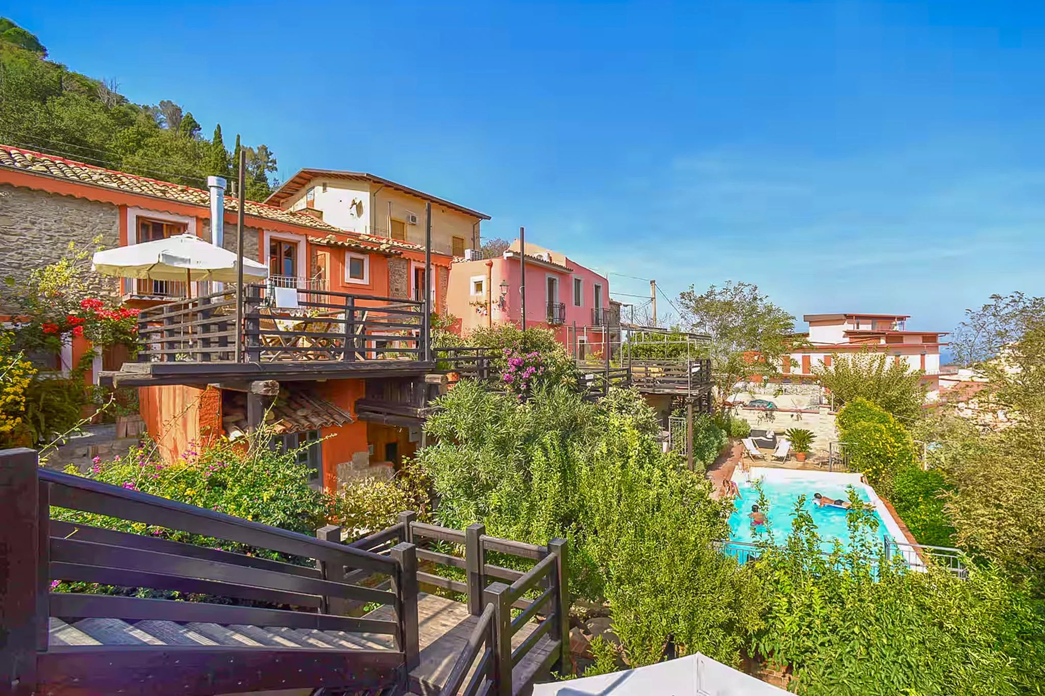 Rodì is a very pretty village with around 2,000 inhabitants. You feel absolutely in the countryside, even enjoying the crows of roosters in the morning. Despite being only four kilometres inland it's almost 200m above sea level and overlooked to the south by a big hill, which means that several points in the village offer breathtaking views of the nearby Aeolian Islands. The residence is almost the last construction before this hill starts to climb steeply, meaning that while you're actually right in the centre of the village you'll never have to worry about development behind you.