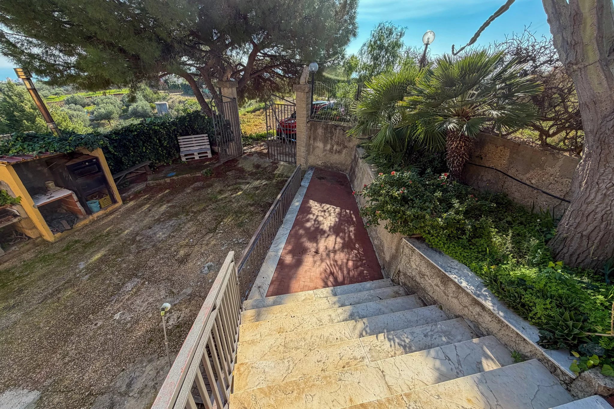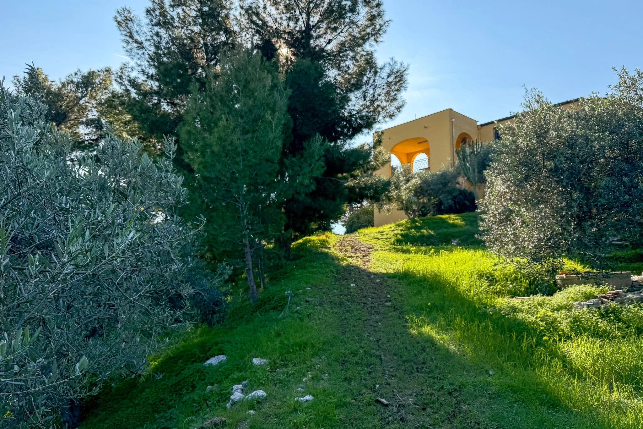 The villa stands in quiet countryside just 150 metres above sea level, with year-round residents living in the neighbouring properties. There are no high-voltage power lines, pylons or busy roads nearby, making this a genuinely peaceful spot. Despite the rural setting, shops in Porto Empedocle are only about ten minutes away by car, offering everything needed for daily life.
