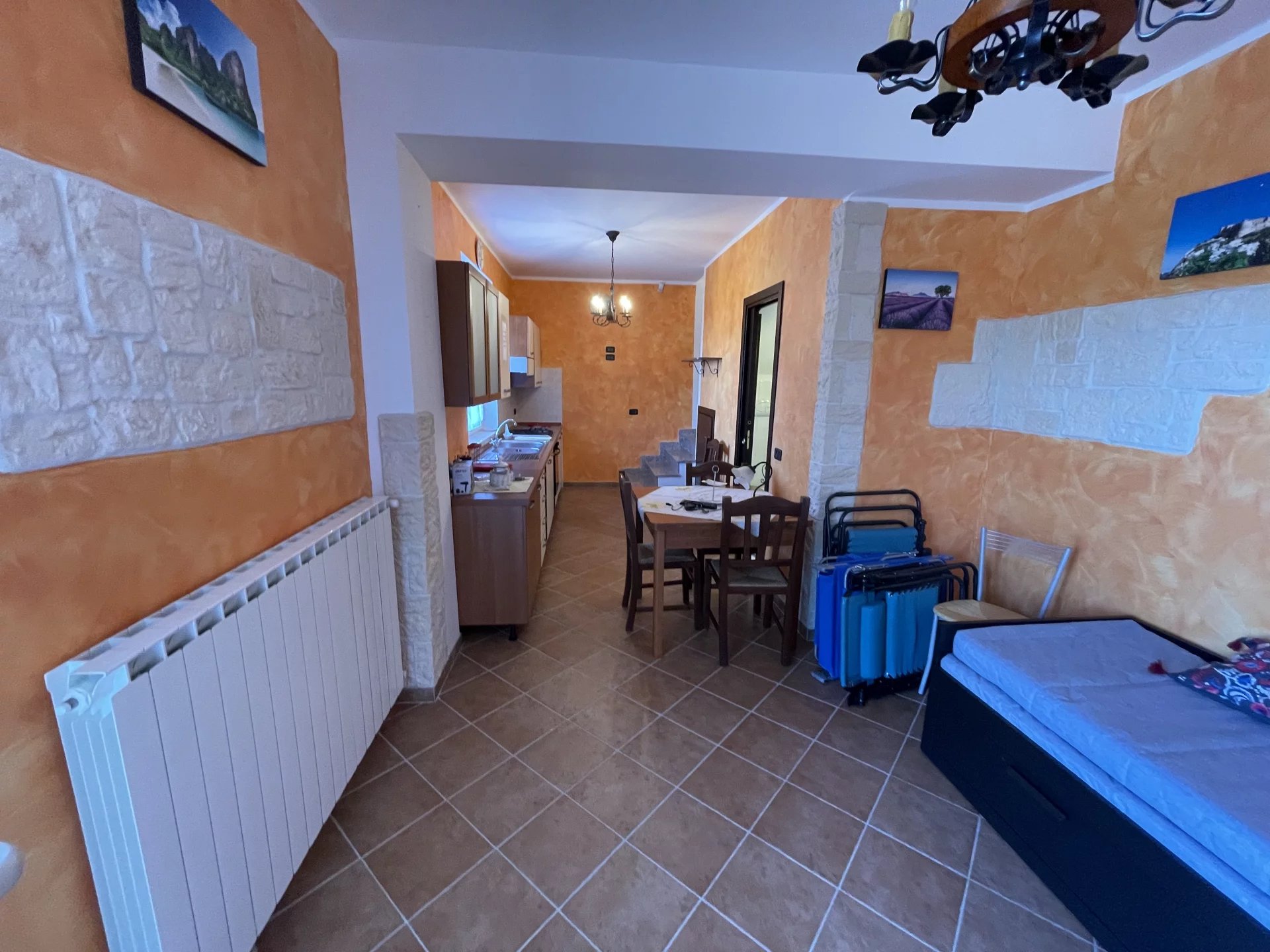 On the ground floor is a long, thin studio apartment with a sofa bed. A fully-fitted kitchenette makes this a fine base for a self-catering holiday apartment if you see the villa as an investment in Sicily's lucrative vacation rental market, this would be a perfect base for a solo traveller or couple to explore the region on a budget.