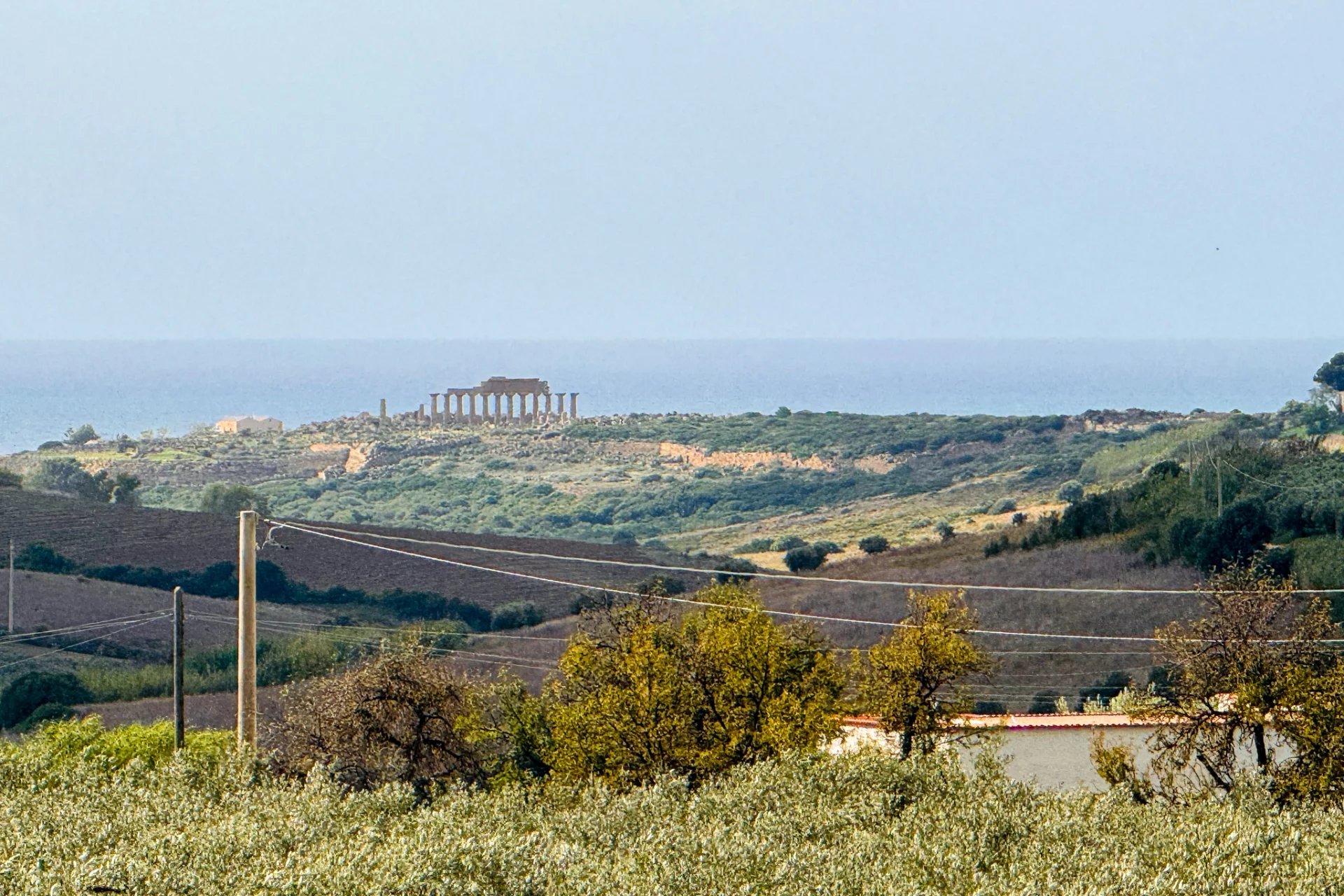 The villa is just off the SS115 road, which brings you from the motorway which runs through Sicily's eastern province into the town of Marina di Selinunte. You definitely feel like you're in the countryside, but in truth the town begins just a short distance to the south. One lovely aspect of the position is that it's built to the west of the SS115, where there is relatively little development compared to the eastern side. Your view, instead, is across farmlands down to the temples and Mediterranean Sea on the horizon.