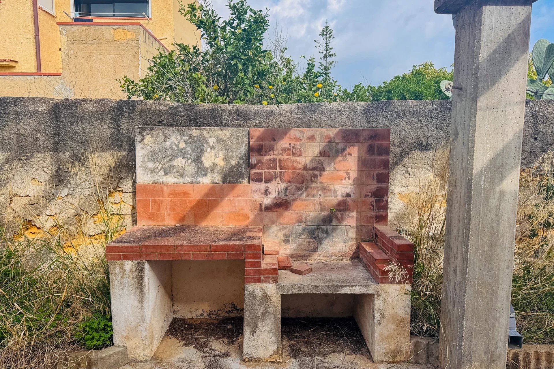 Outdoors, you will find an outbuilding which serves as storage for tools and garden furniture, and an old rainwater tank which has been used for garden irrigation. The property is completely enclosed by a low wall with metal fence, and both of these are in good condition. A fixed grill has been built opposite the kitchen for al-fresco cooking.