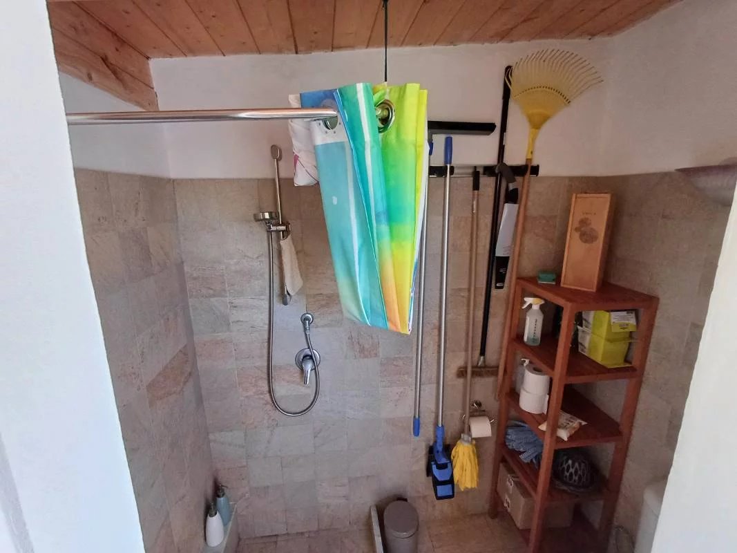 Adjacent to the outdoor kitchen is a comfortable bathroom with shower and washbasin.