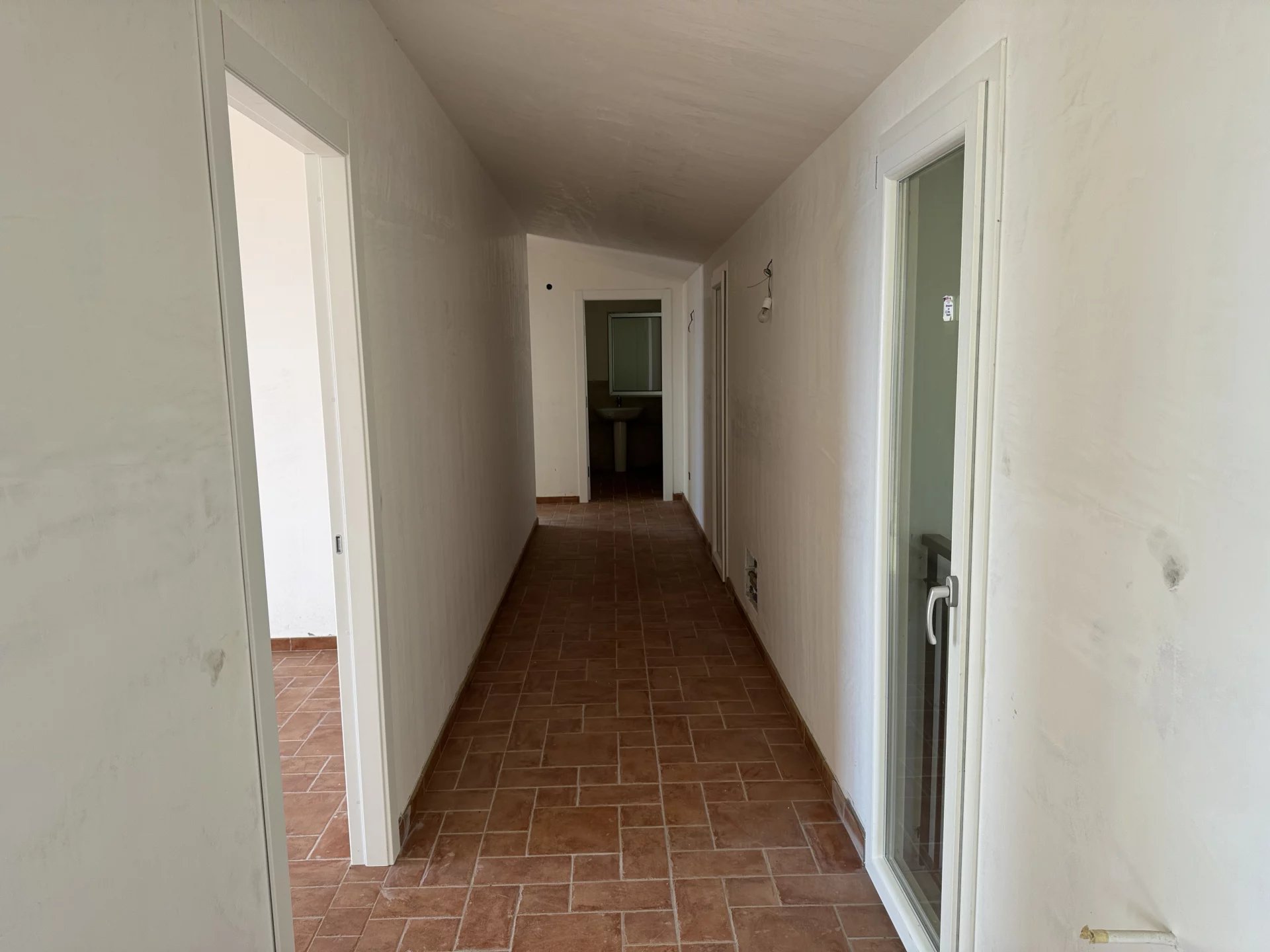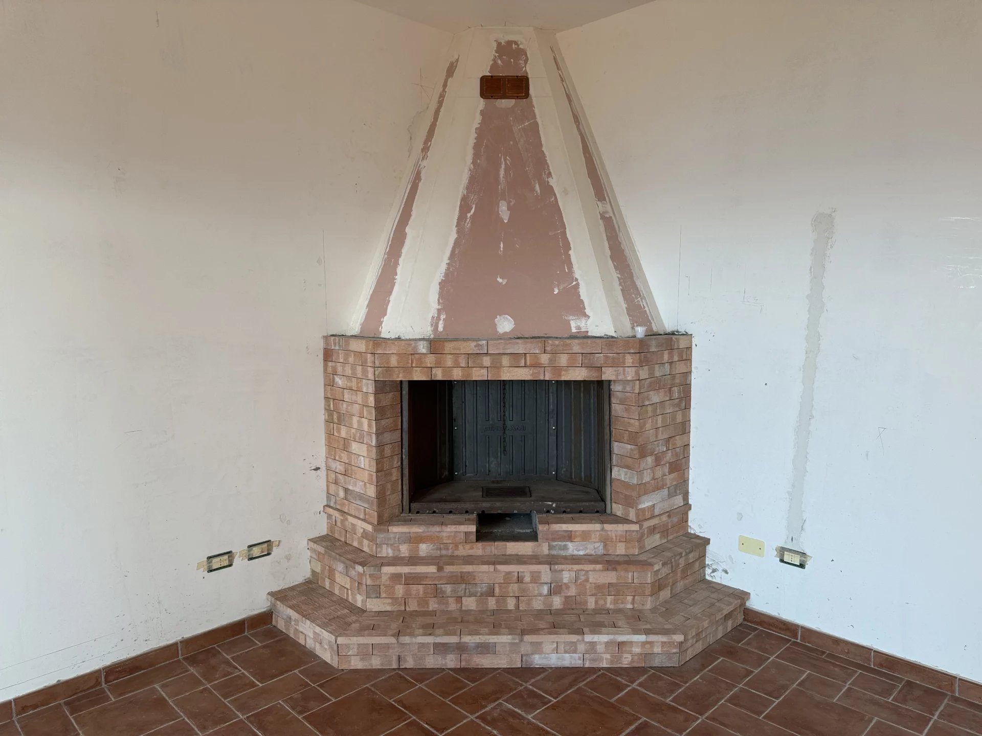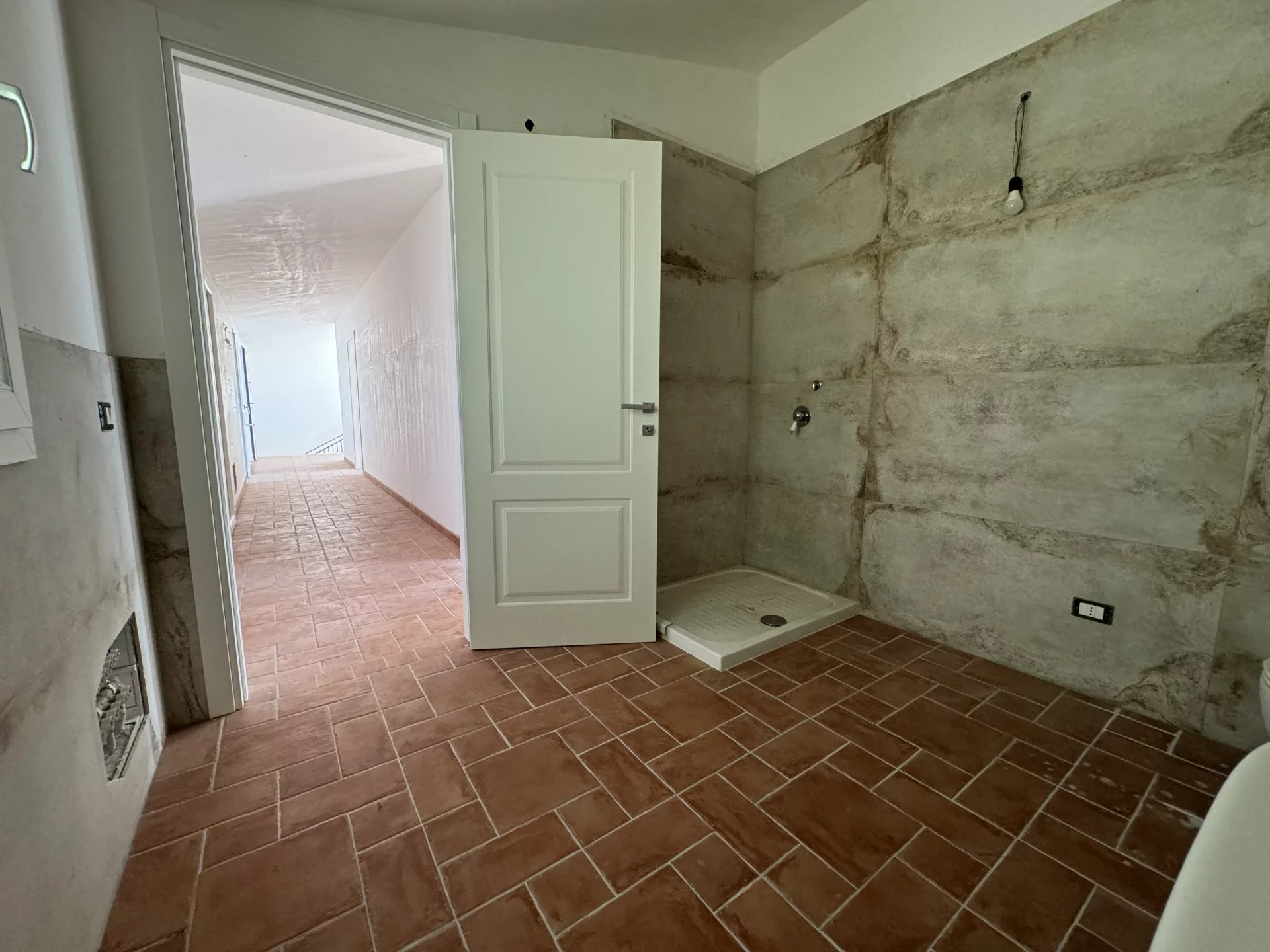 Everything, obviously, is brand new. The windows are double-glazed with thermal insulation and external wooden shutters. The doors are in wood, the floors in local terracotta tile and the finishings, like the beautiful fireplace and the columns of the veranda, in exposed brickwork.
