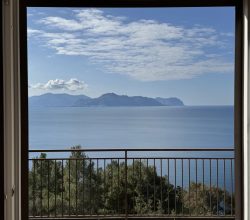 The downstairs bedroom has a beautiful sea view from the west-facing window and a dual exposition, thanks to the French windows which bring you straight out onto the veranda. The kitchen is spacious and versatile, connecting both to the hallway and the living room.