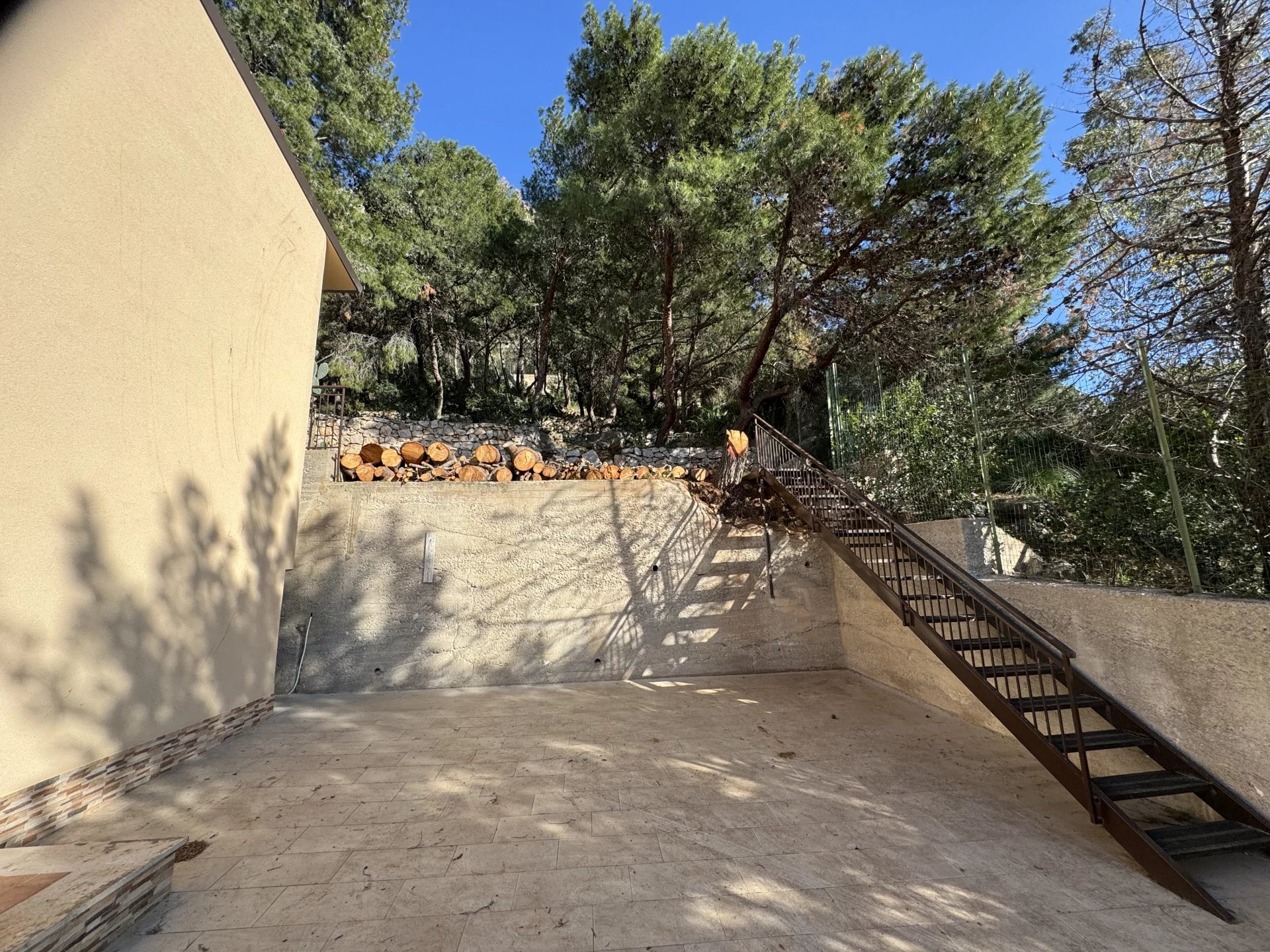 The plot is a total of 3,300m2 in size, most of which is sloping woodland filled with pine and oak trees. It wraps completely around the detached villa.